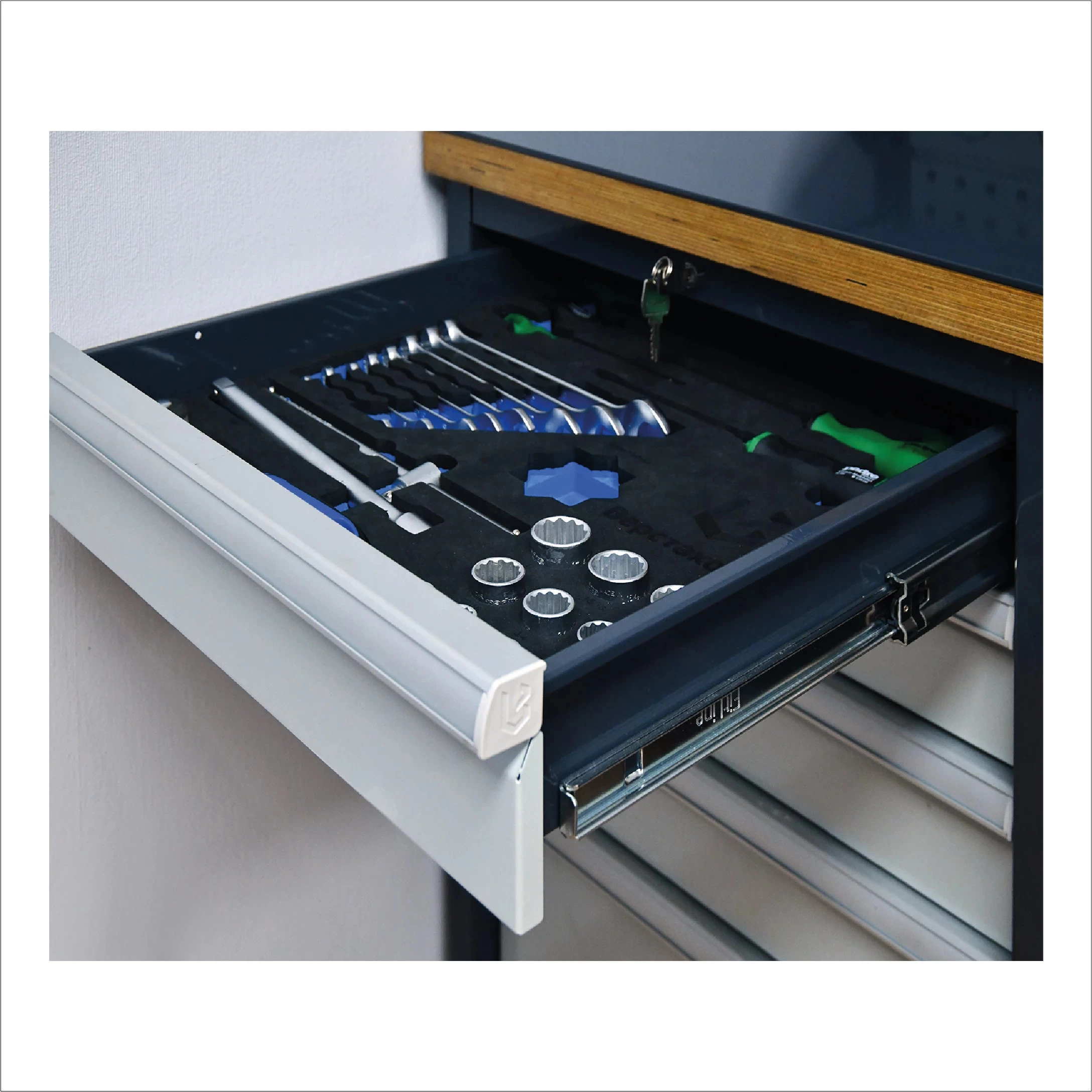 Тумбы с ящиками оборудованы усиленными шариковыми направляющими, которые обеспечивают плавное выдвижение для каждого отделения и гарантируют повышенную грузоподъёмность. Все ящики оснащены удобными ручками, на которых предусмотрено место для маркировки. Внутренние размеры малых ящиков — 80x460x500, больших — 190x460x500. Максимальная распределенная нагрузка на каждое отделение — 100 кг. Тумбы комплектуются центральным ключевым замком и защищены от опрокидывания специальной системой, которая ограничивает полное выдвижение всех ящиков одновременно.